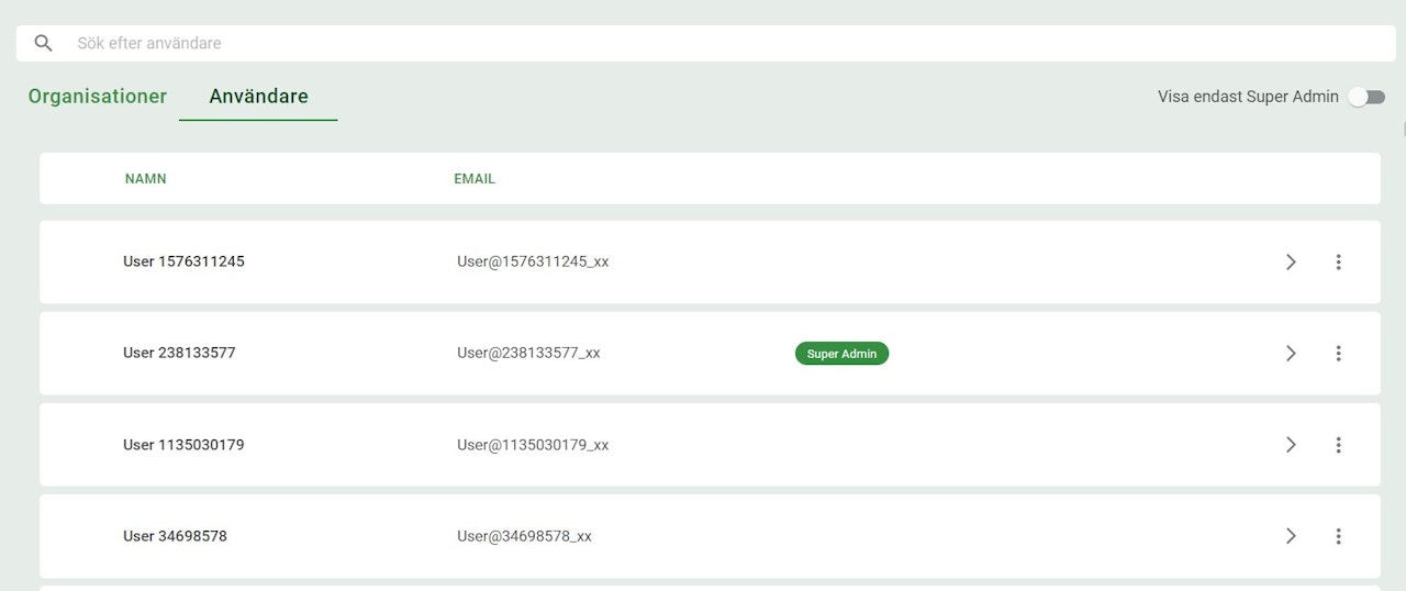 Can use the same information as under an organization. This gives the opportunity to see all users with whom you are related. Also gives the possibility to edit the user in several levels at the same time.
