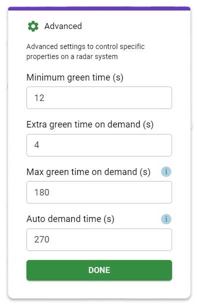 Extra green time on request - the time that the signal extends the remaining green time by on new radar detection.