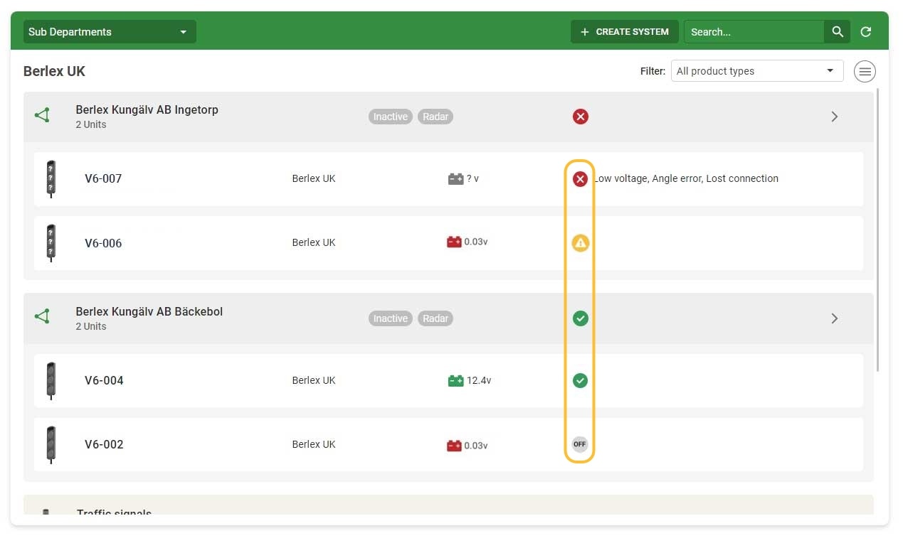 Yellow symbol - Units are experiencing a problem, however still working but may require attention